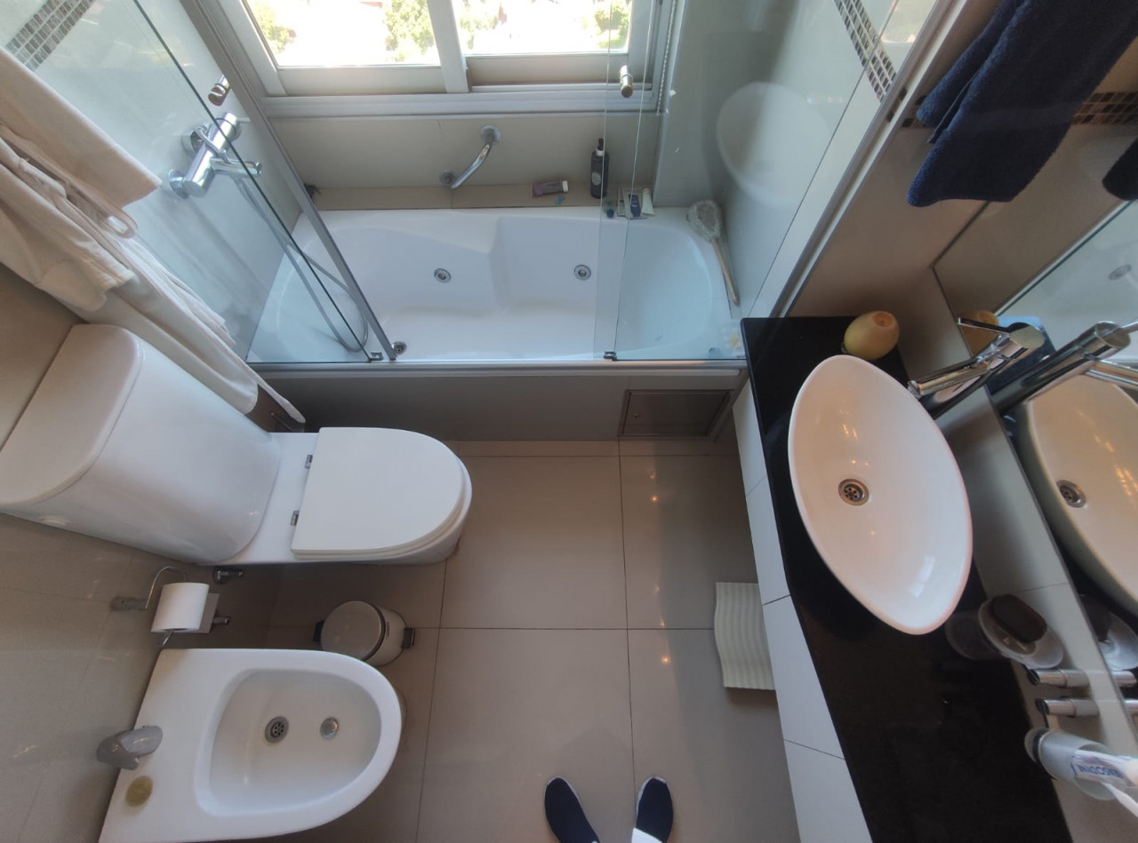 Pasillo. Suite: vestidor de pared a pared, ventanal en L con unas vistas increíbles. Ante baño con doble mesada de mármol negro mueble de colgar de 2 puertas de vidrio esmerilado, puerta de vidrio ídem a sector sanitarios: bañera Hidromasaje, ventana de 2 hojas, calienta toallas.