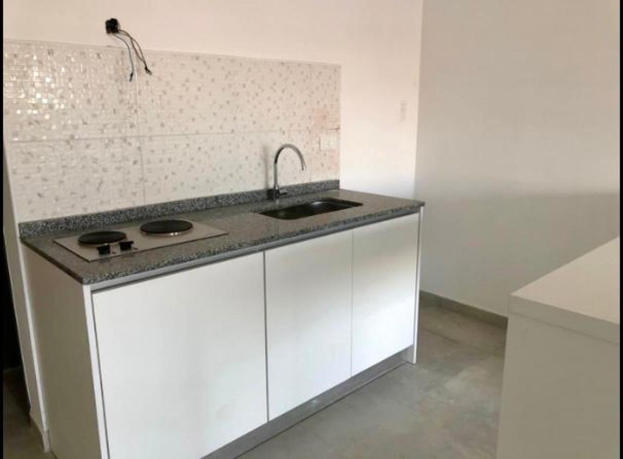 LIVING COMEDOR CON COCINA INTEGRADA, CON BARRA DIVISORIA, ANAFE, Y BAJO MESADA